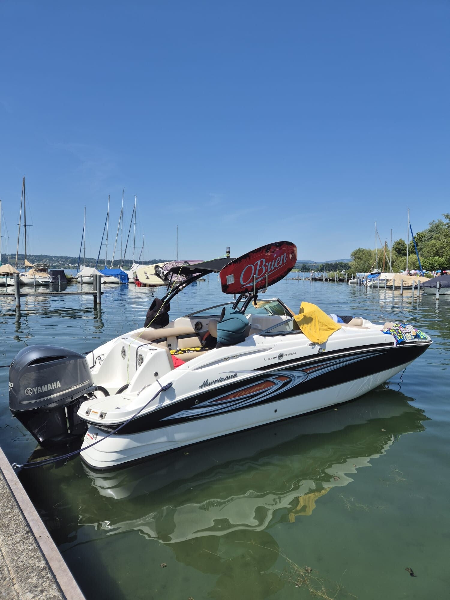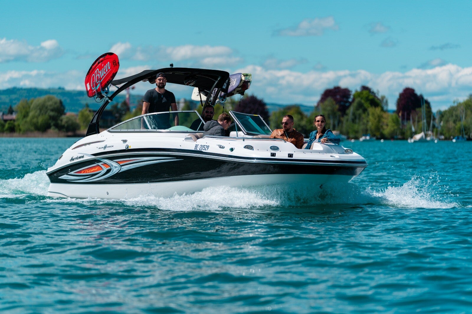 Die Events werden mit dem Hurricane Sundeck durchgeführt. Das Boot hat Platz für bis zu 10 Personen. Das Boot verfügt über Schattenplätze und genügend Sitz- oder Liegeplätze für alle Teilnehmenden.